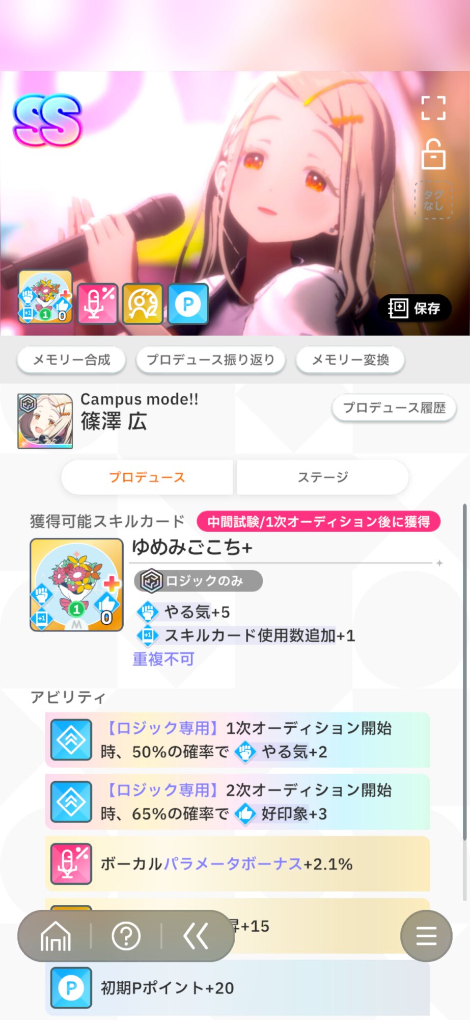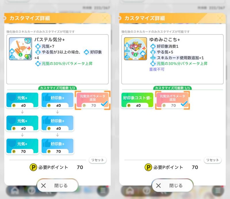 開始時挨拶があるね。アイドル宣言は拾えたらカスタム元気したものをメモリーにできると楽だから道中でカスタムしたい。