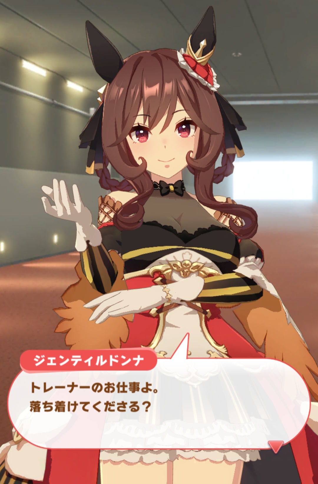 ちょっとぎこちなく腕を回されてホッとするジェンティルは居る