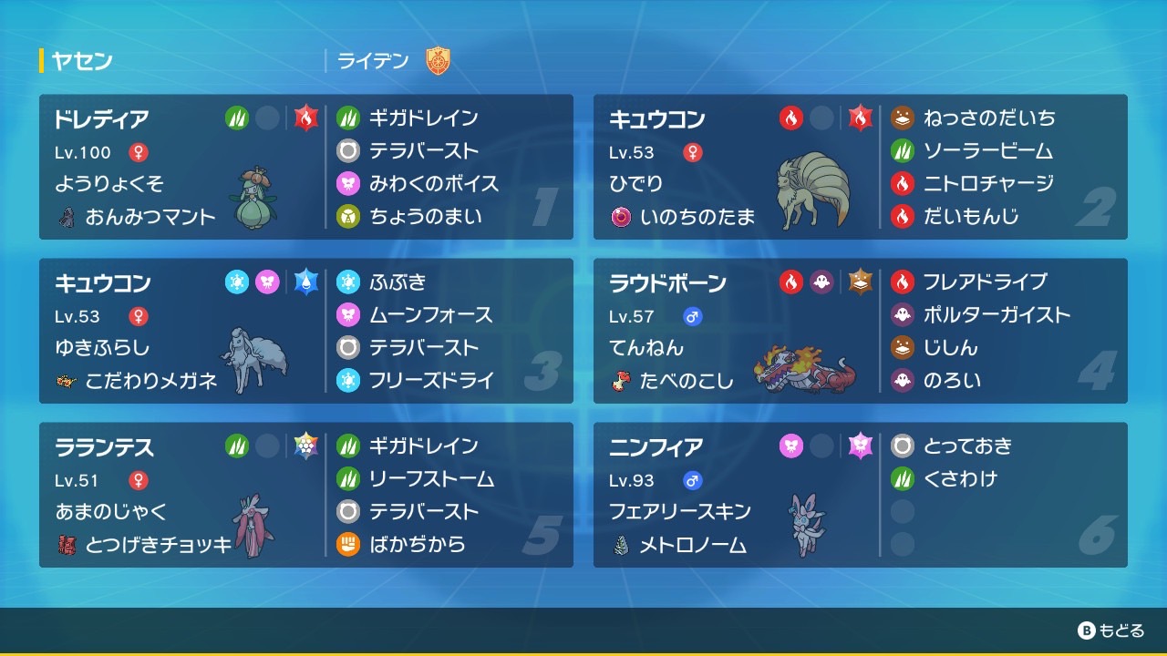 ニンフィア(NN:オウウン)→やりたいことは伝わるけど終盤でもらったから使えなかった型