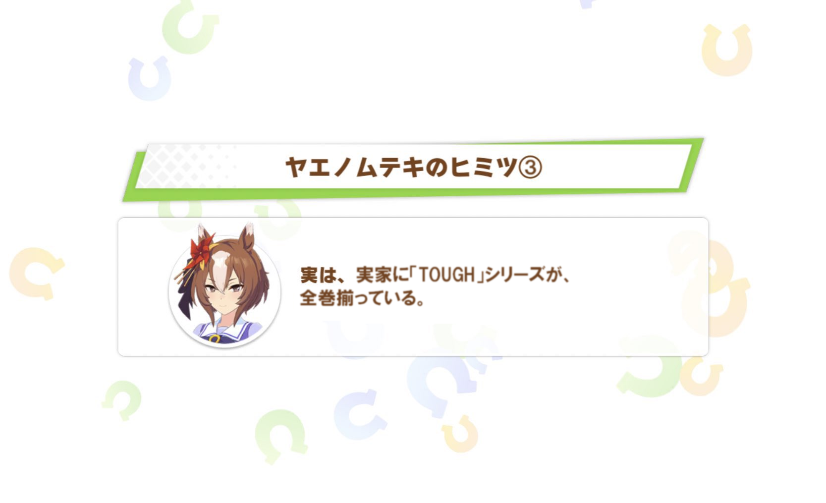 それヤエノ・ムテキのサポカイベントなんでタフなシナリオになるのはヤエ・ノムテキの方だと思われるが…