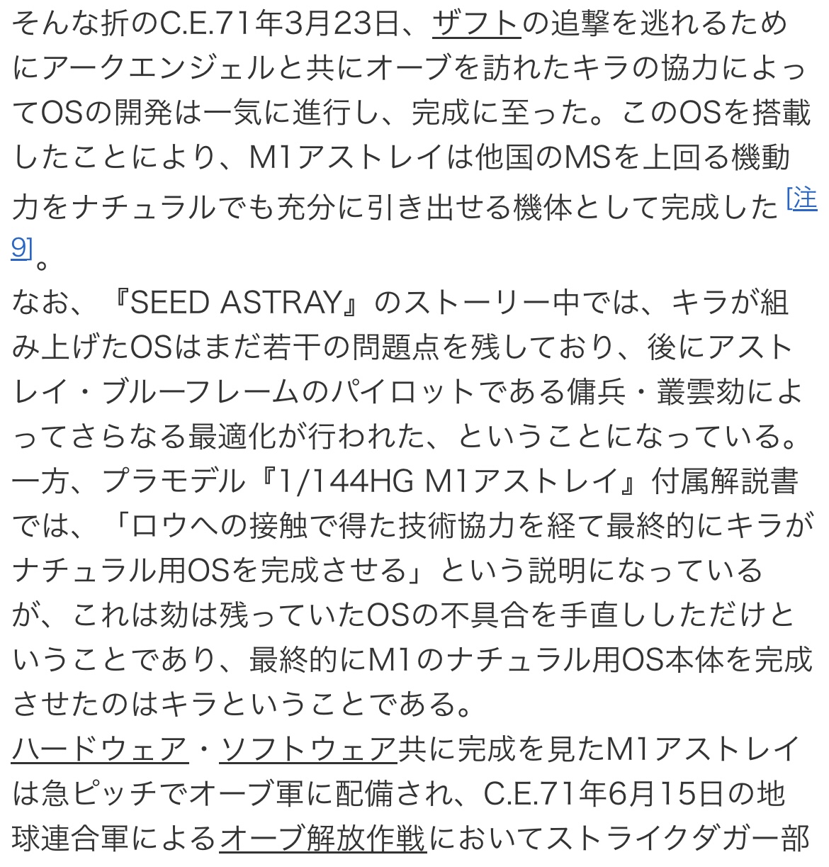アストレイのナチュラルOS をロウが改造それを組み込んだM1のOS をキラが完成させる