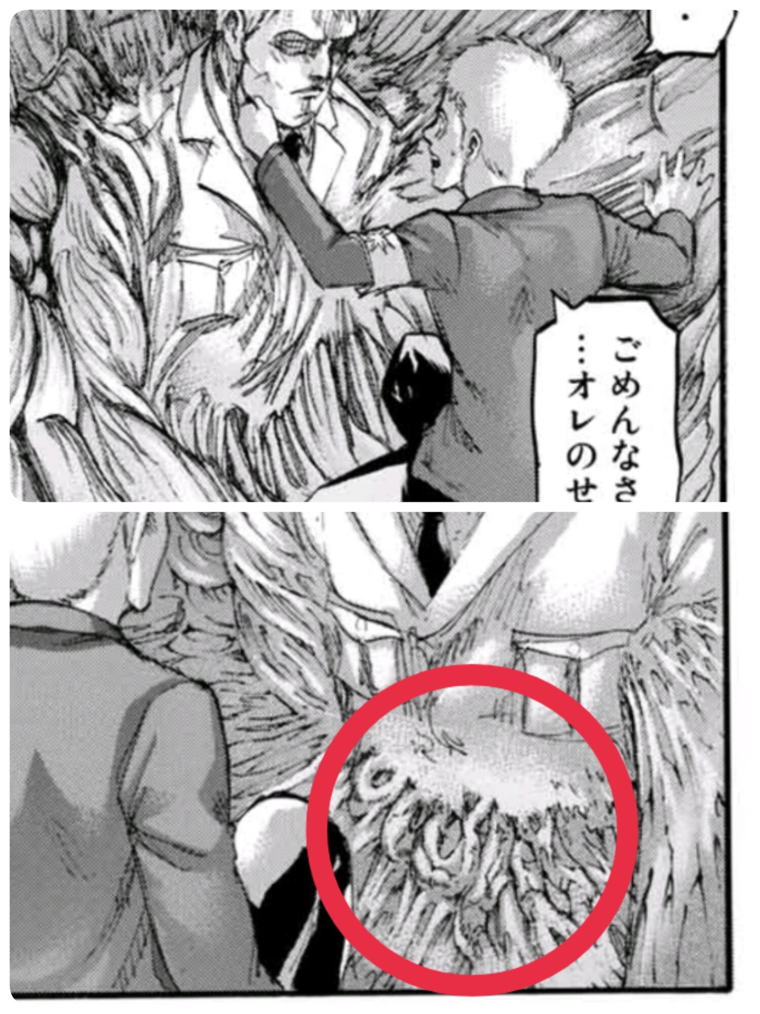 ジークが森でリヴァイにやられた時はモツぼろんぼろん出てたかな