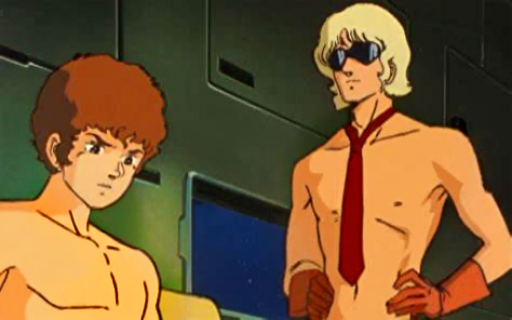 ガンダムではないがブレイバーンのイサミも裸だったな…