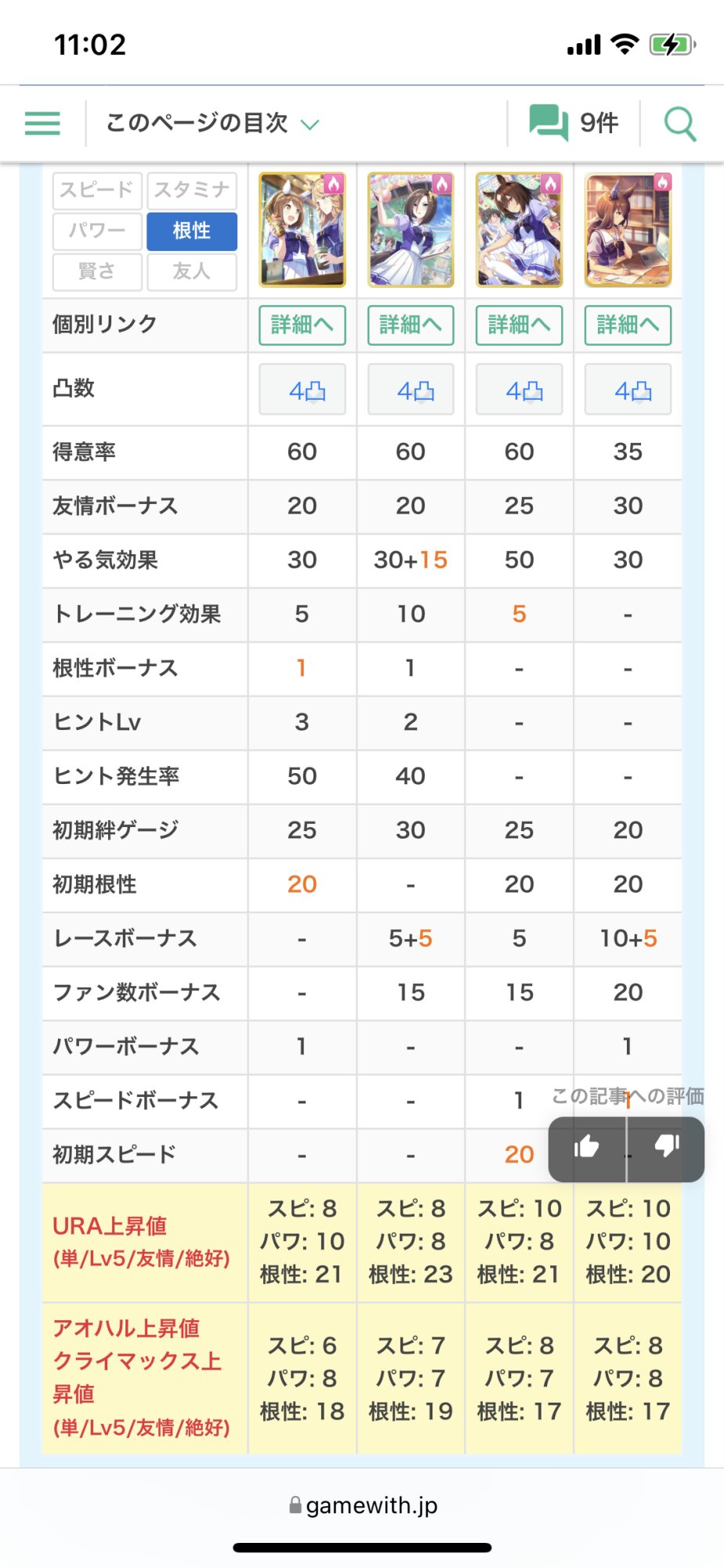SRユキノは…根性上げる性能は強いと思うぞ