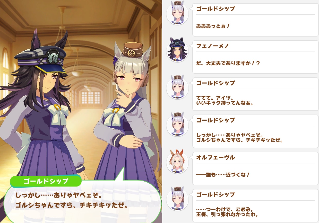 メノシナリオだとレース前の煽りとかも普通に熱いのを普通の言葉で言ってるのでかなりマジ