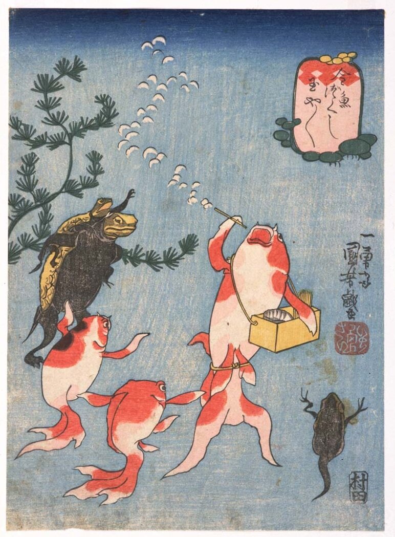 びいどろに入った金魚を眺めつつ夕涼みされる月島軍曹も良き (後で金魚を大きめの盥に移してあげる軍曹)