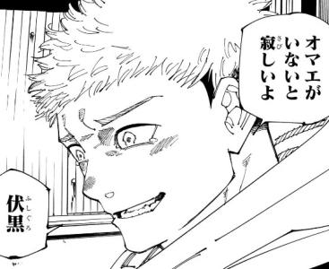 死んだら殺すとか俺を助けろとか結構グイグイな伏黒に対してのアンサーみたいなものだから強い言葉使うかなと思ってたらオマエがいないと寂しいよはそうきたかーと思った