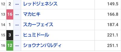 俺神様見習いだから、権限は弱いけどこれヒュミドール·ショウナンバルディ·スカーフェイスの三連単で勝ったらサンドピアリス超えれるかな···