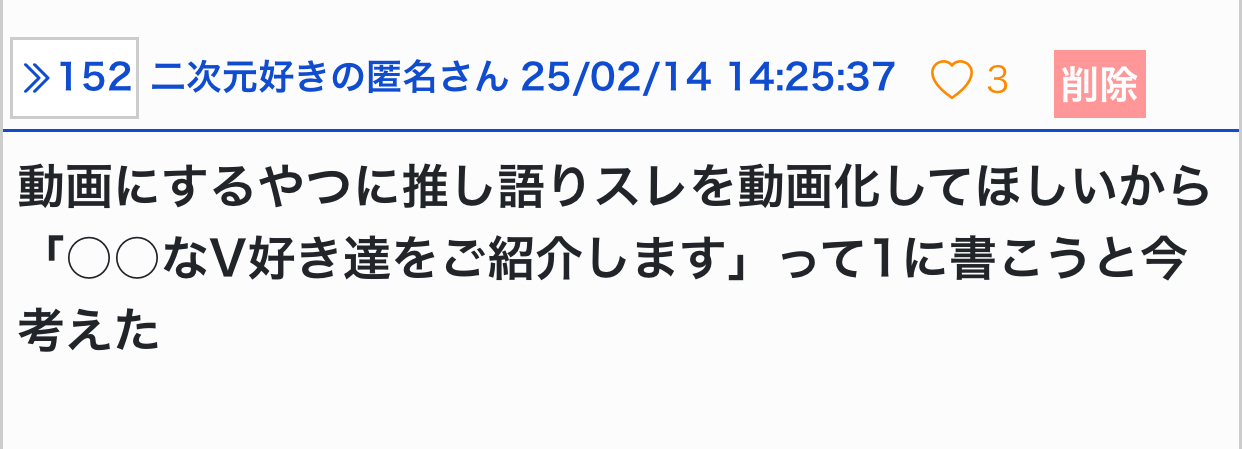 今日は配信お休みかなあ - 14二次元好きの匿名さん25/05/17(土) 19:33:45