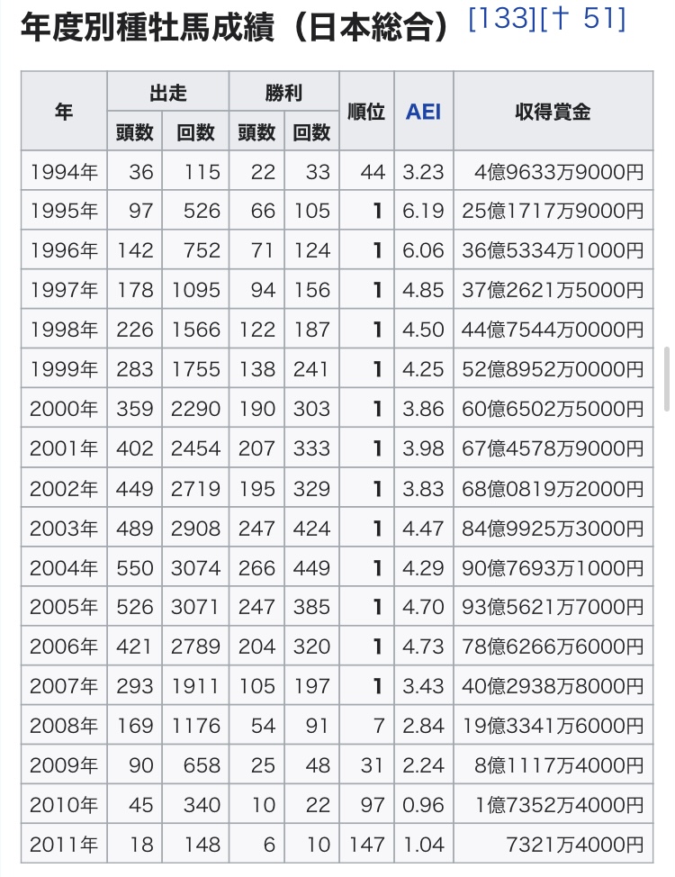 こいつ自体がバケモンみたいな種牡馬だしその血を引くディープもバケモン種牡馬