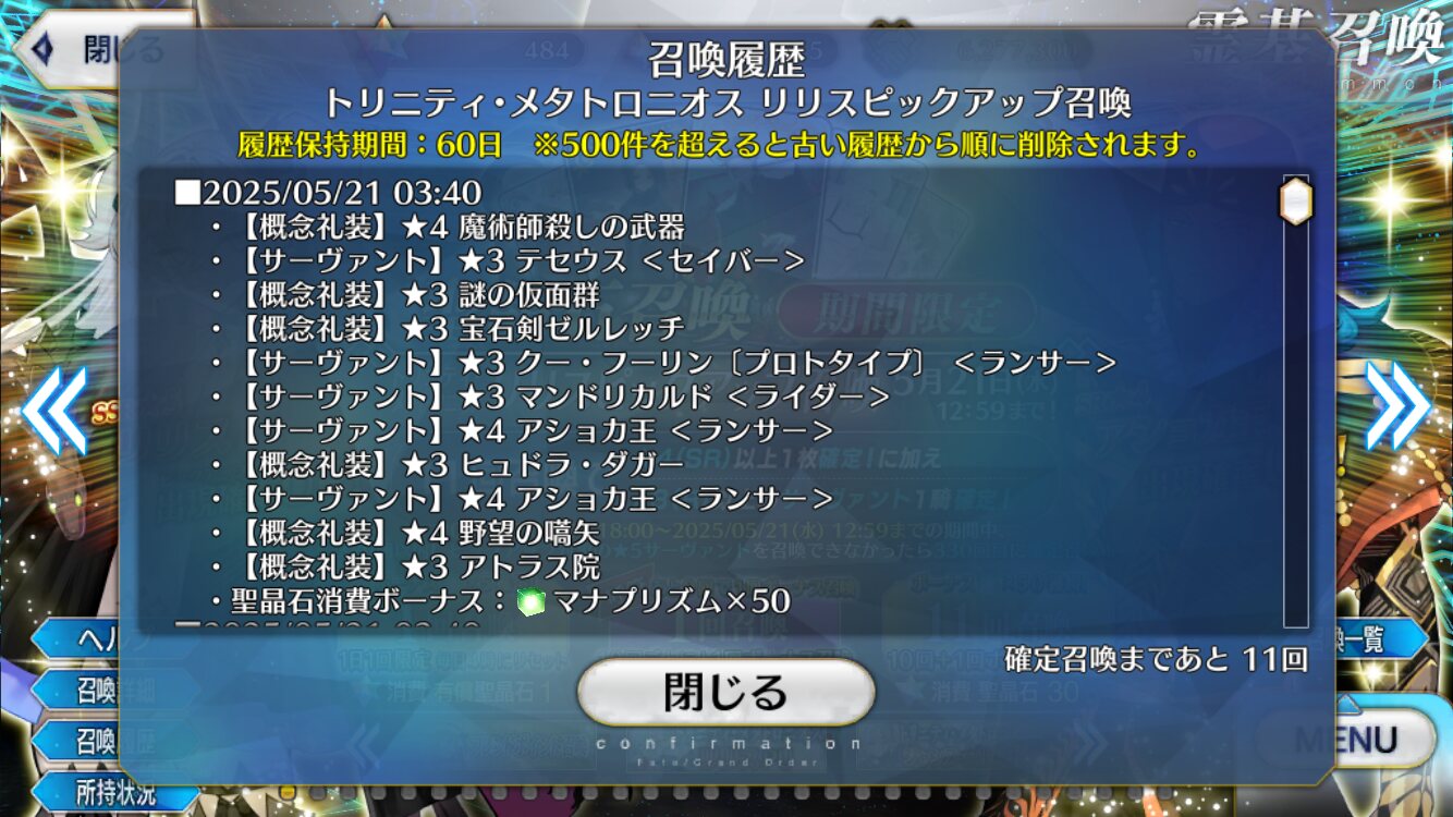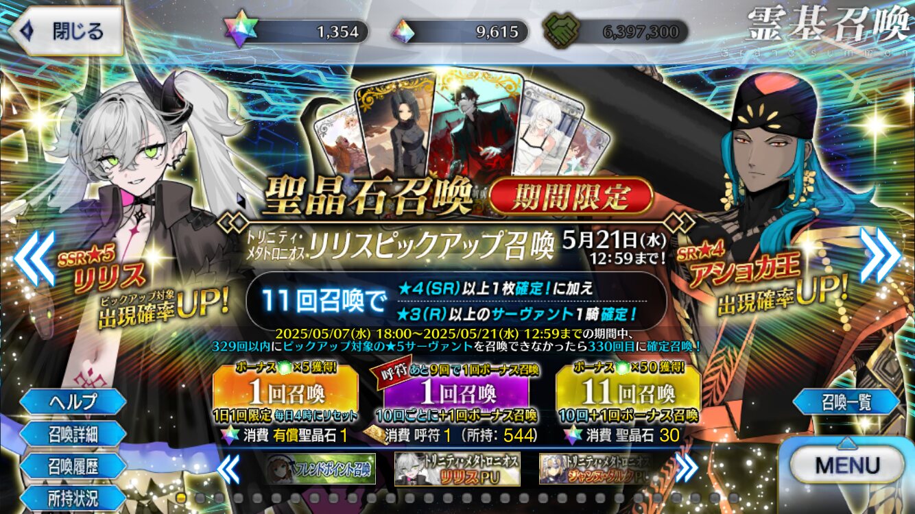 言峰とリリスどちらもめっちゃ好きってほどじゃないんだけどストーリー活躍見てると記念に引きたくなって意地になって引いてるうちにどっちも天井まで引かされちゃってもうおしまいだよ
