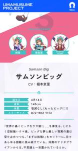 (飛び石のマルゼンを一旦例外として)現時点でのシビエス世代以降の日本馬ネームドキャラは、G1勝ってようが重賞未勝利だろうが関係なく月に1,2回ペースで漏れなく実装されてるのでビッグだけNPCなのはいろいろ矛盾が生じるし、特に関係者に馬一頭ずつ許可を取ってる以上は他のキャラゲー以上にひとりひとりの扱いには気をつけなければいけないコンテンツなだけに、サムソンビッグだけNPCです。なんて露骨なコトしたら、炎上騒ぎになって築き上げてきた信頼が損なうのは目に見えている - 90二次元好きの匿名さん25/05/24(土) 02:07:00