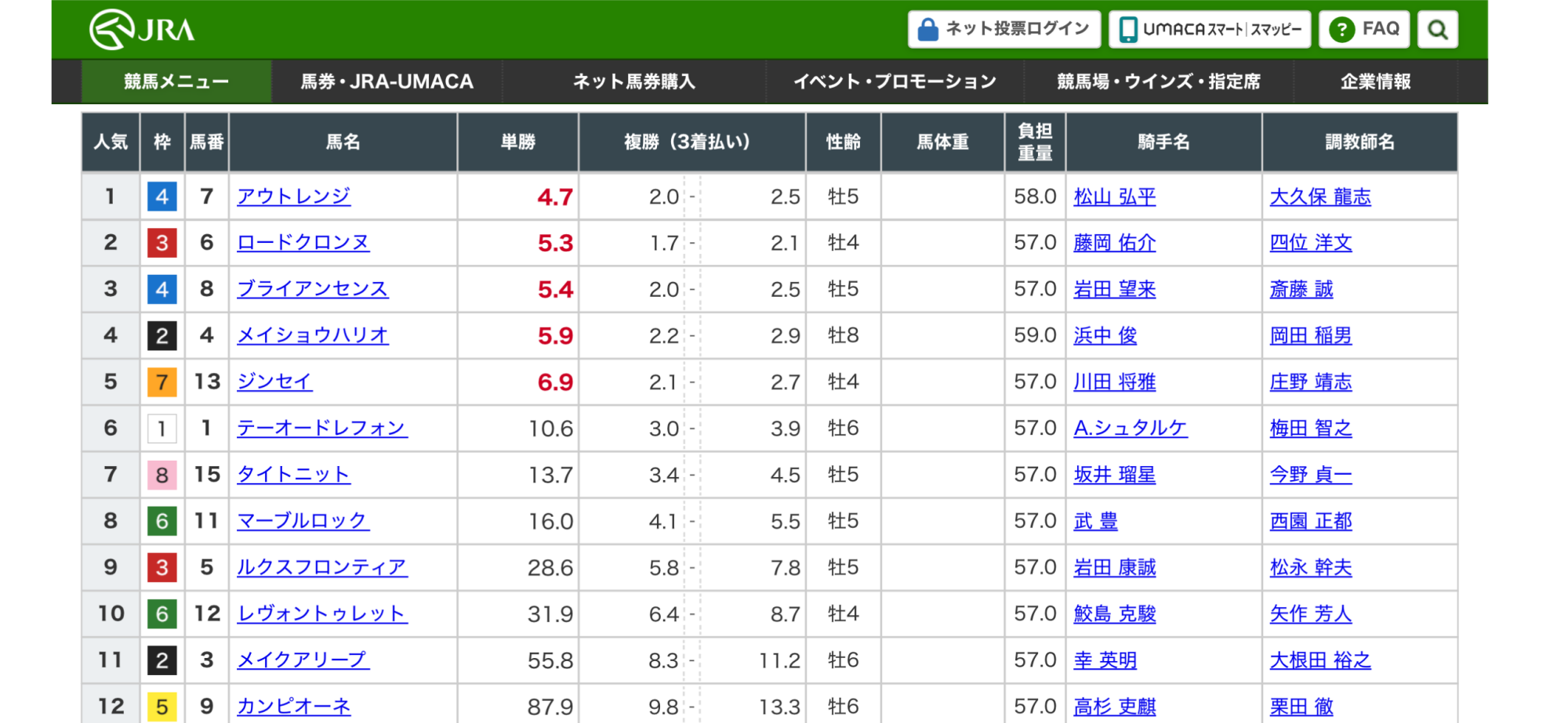 明確な不安点があるとはいえ実績はずば抜けてるし、なんだかんだで1番人気なんだろうなぁ