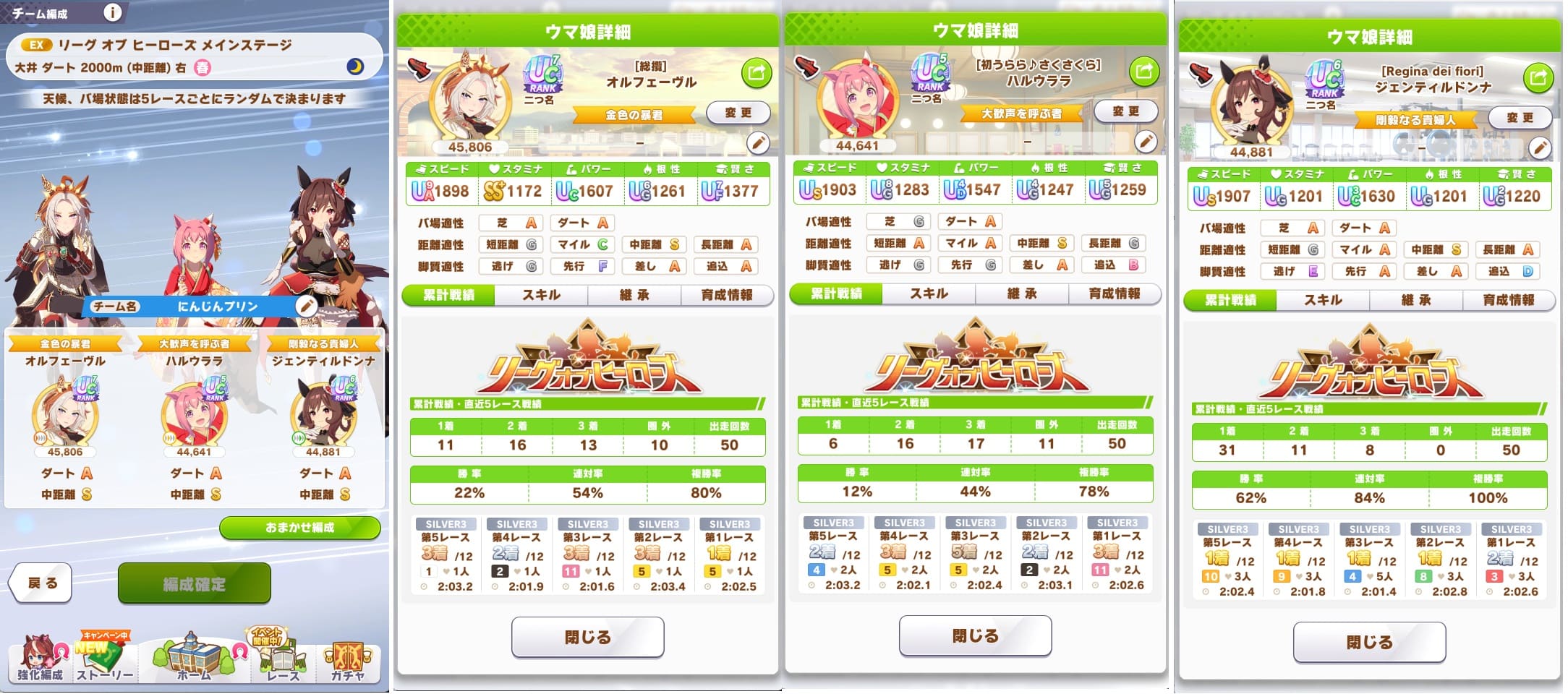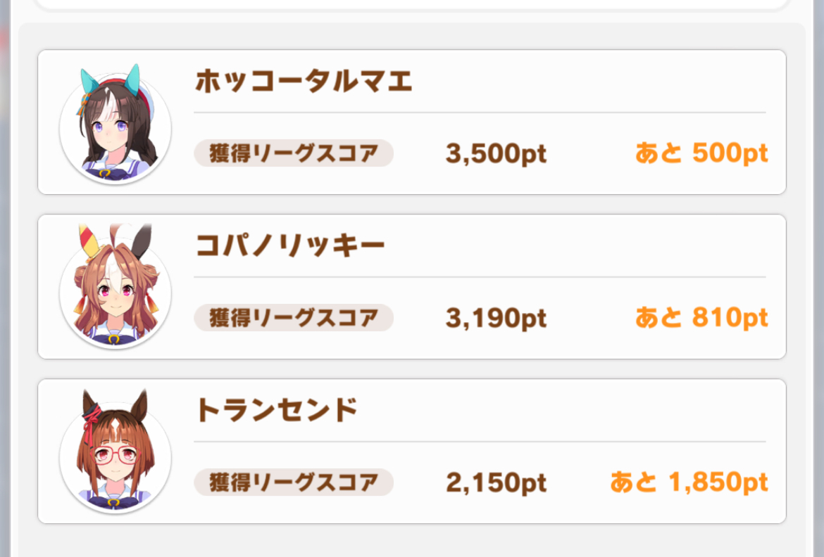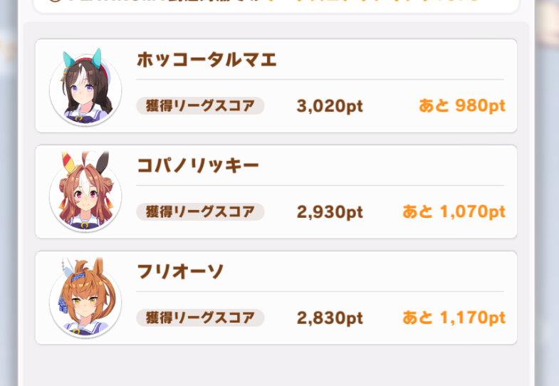 今日一日はまだ育成頑張ろうと粘ってるんだけど逃げ3にしてもメンバーの正解が分からん