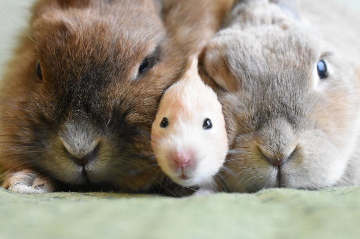 うさぎさんがぬいぐるみとくっついて寝てるの可愛いな