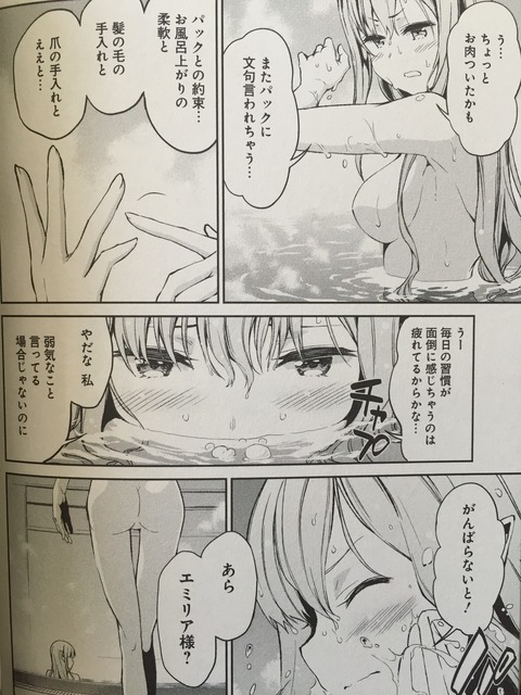 この場面に遭遇しても、エミリアはキョトンとし、スバルの方が赤面して悲鳴を上げ謝罪しながらダッシュで出ていきそうなんだよな