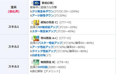 じゃあs1で対策するために強化成功率と強化解除耐性付けるか…ついでに宝具バフとか付かない?