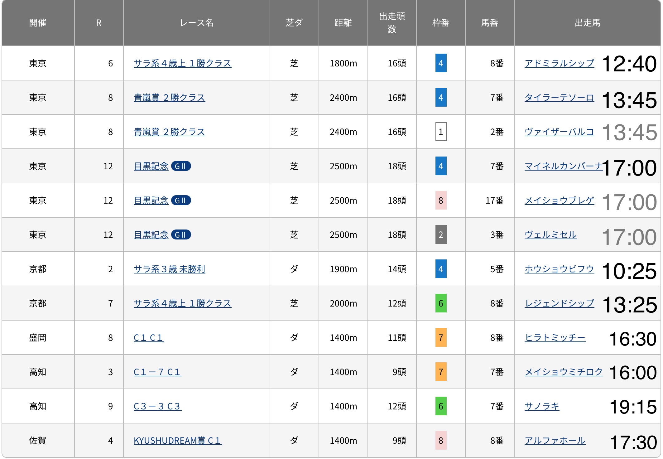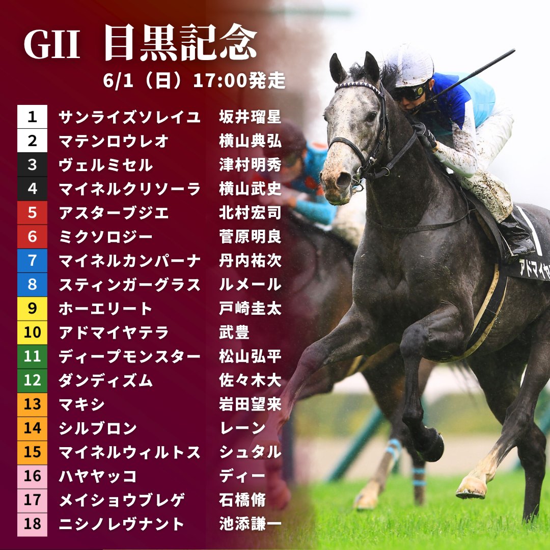 目黒記念の枠順って今日だっけ明日だっけ