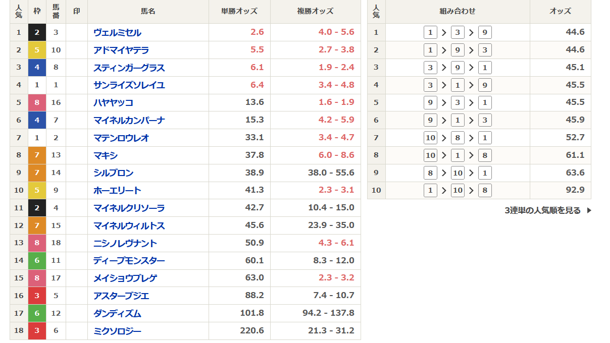 目黒記念のオッズ一番人気 ヴェルミセル