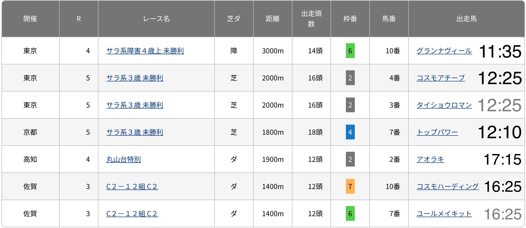 産駒の出走情報はここから