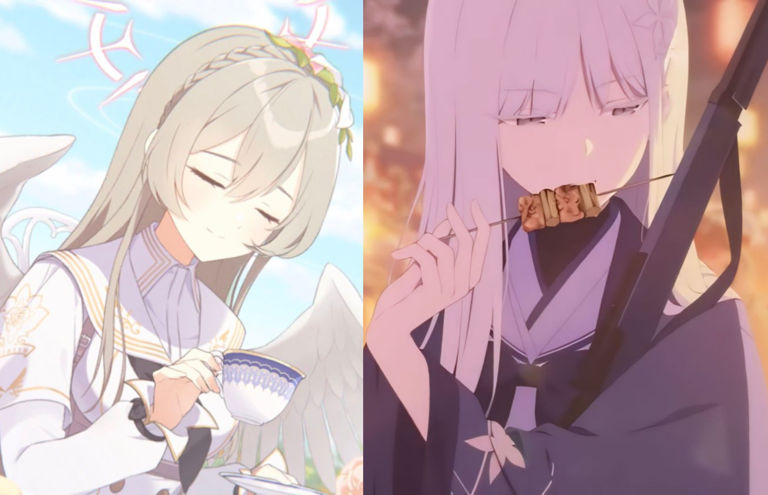 えっ!?いつも通りあーんってしてもらおうとするけど両手とも使えるから別にいいわけ考えないといけなくなったナグサときにせずあーんしてるナギサ!?