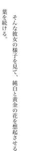 装飾品のシャラシャラした音が静寂の中ただ鳴り響くんだ