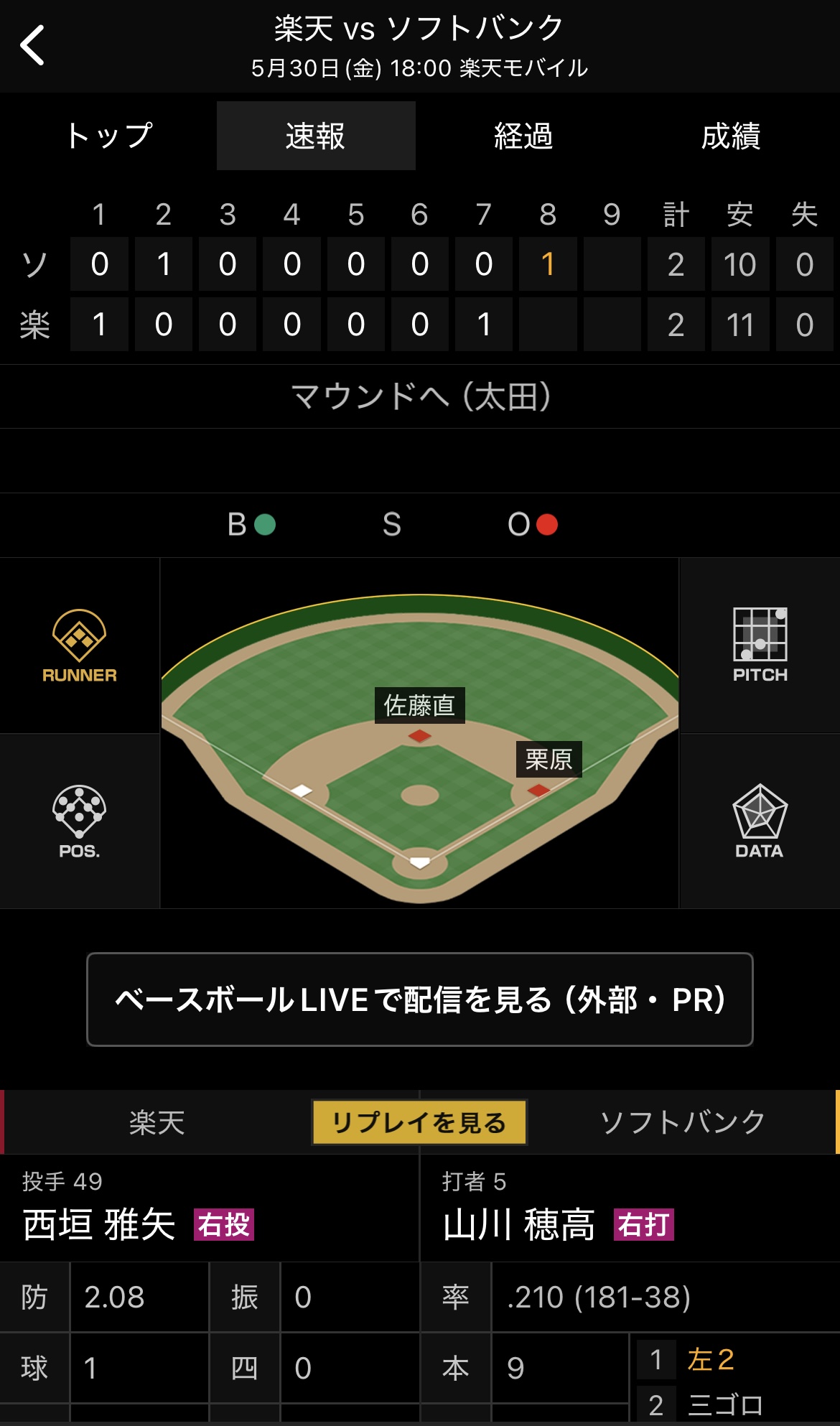 流石にプレーを続行できるような状態ではないと思われたが審判団はグラウンド整備をした上での試合続行を判断、実に55分間もの中断を経て試合が再開*2されたため、審判の楽天贔屓がすぎる*3と話題となった。なお楽天は一死一二塁での試合再開後即ゲッツーでチャンスが潰れ、その後ソフトバンク打線が8回の柳田のソロに加え9回に一挙5得点と爆発した末9-2で敗戦。