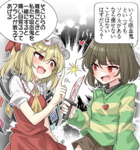 人間が地下世界のモンスターにボボパンで勝てるのはモンスターが決意に弱っよえーよっていう設定があるからであって、特にそういう弱点が設定されてないフランのほうが圧倒的に強いからまず勝負にならないのん