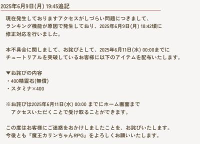 ログイン障害が解消して詫び石と詫びスタミナが配布されたのは良いけど…