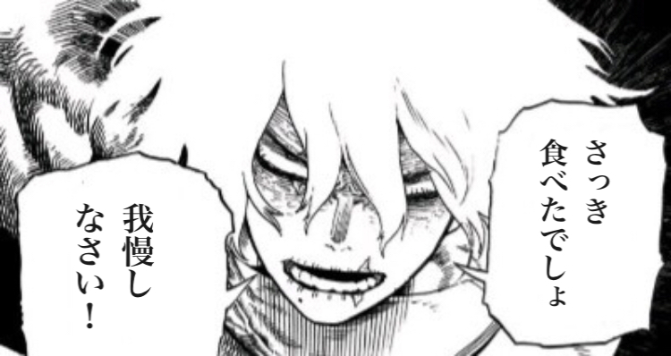 なるほど、お袋の味って感じだ。オールマイト、ちょっと御代わり作ってくれない?(弔の残した弁当の付け合わせを処理しながら)