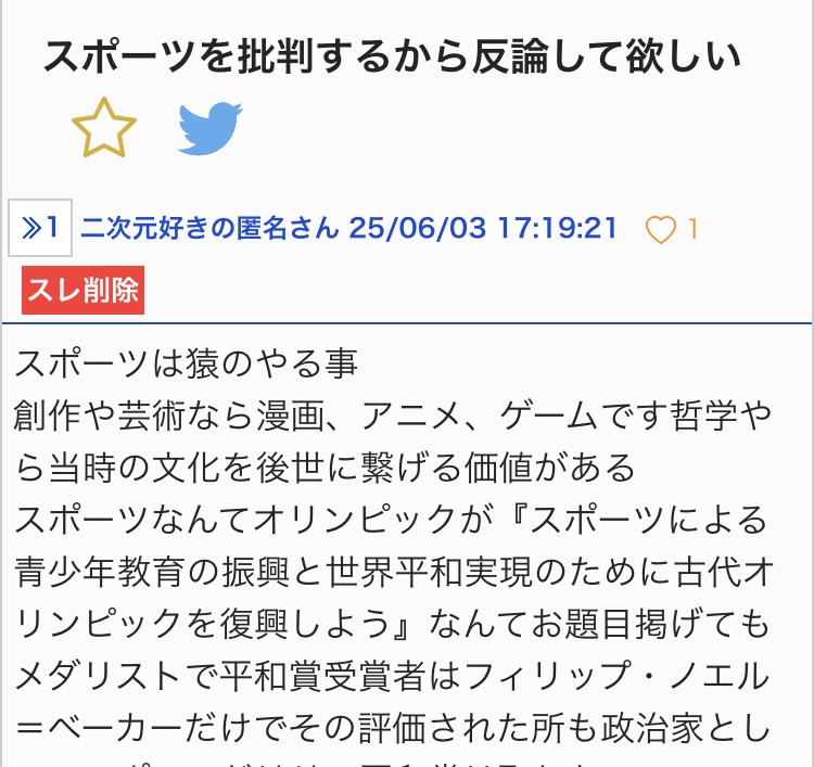 スポーツ選手やスポーツを本気で貶したり批判するつもりはありません - 29二次元好きの匿名さん25/06/03(火) 18:00:51