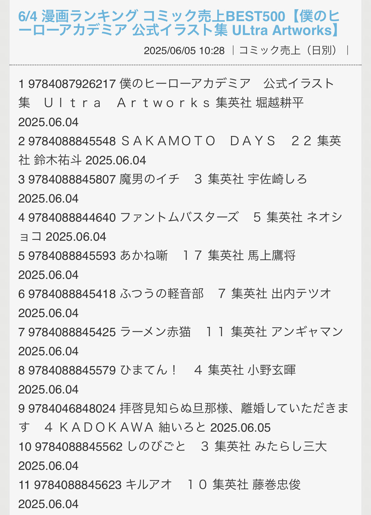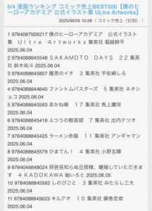 集英社すげぇ…発売日だけあって上位独占してるし