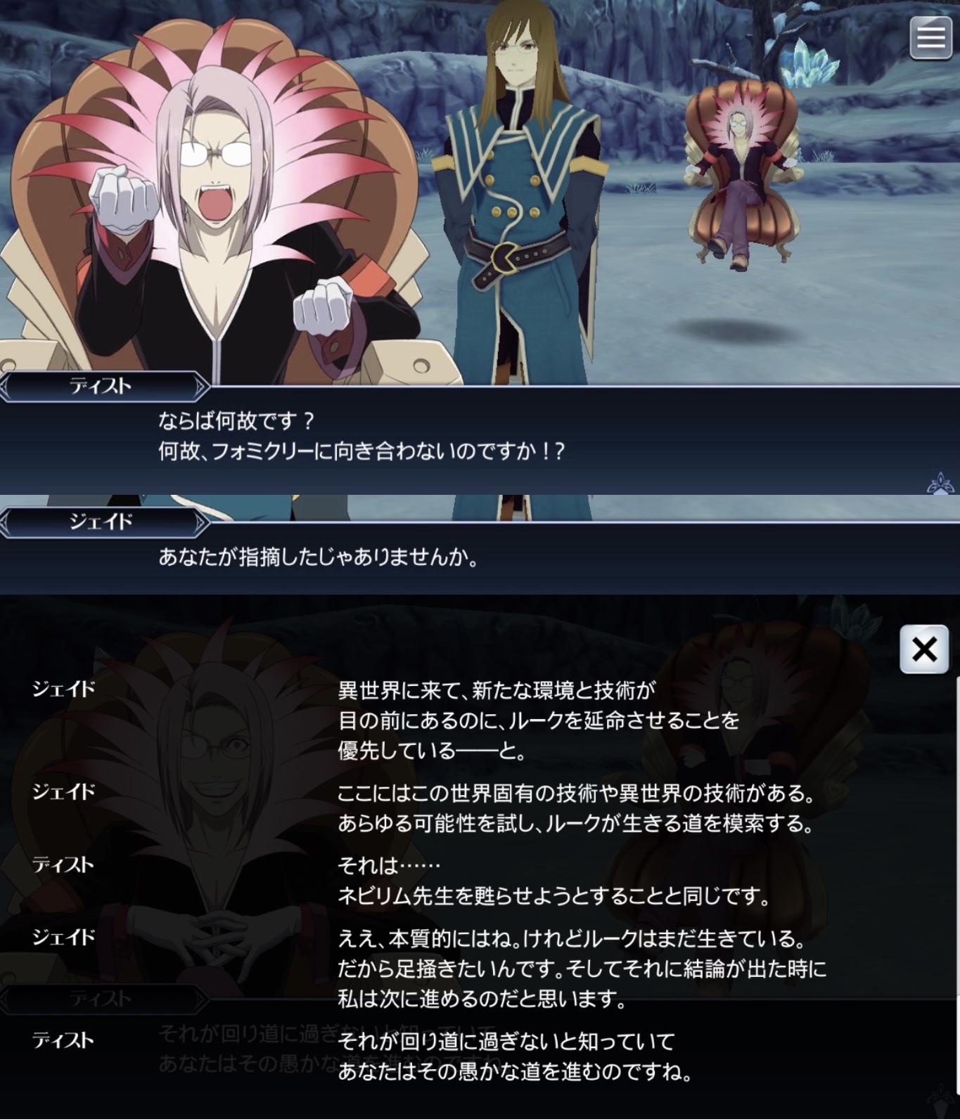 一時はスタッフの暴走で単なる陰険腹黒眼鏡になってたけど本編のルークと友人になったこと恐れ知らずの天才が苦悩していくのがジェイドの魅力だよなあ