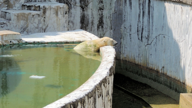 藻が生えて緑色なってるシロクマちょっとすき