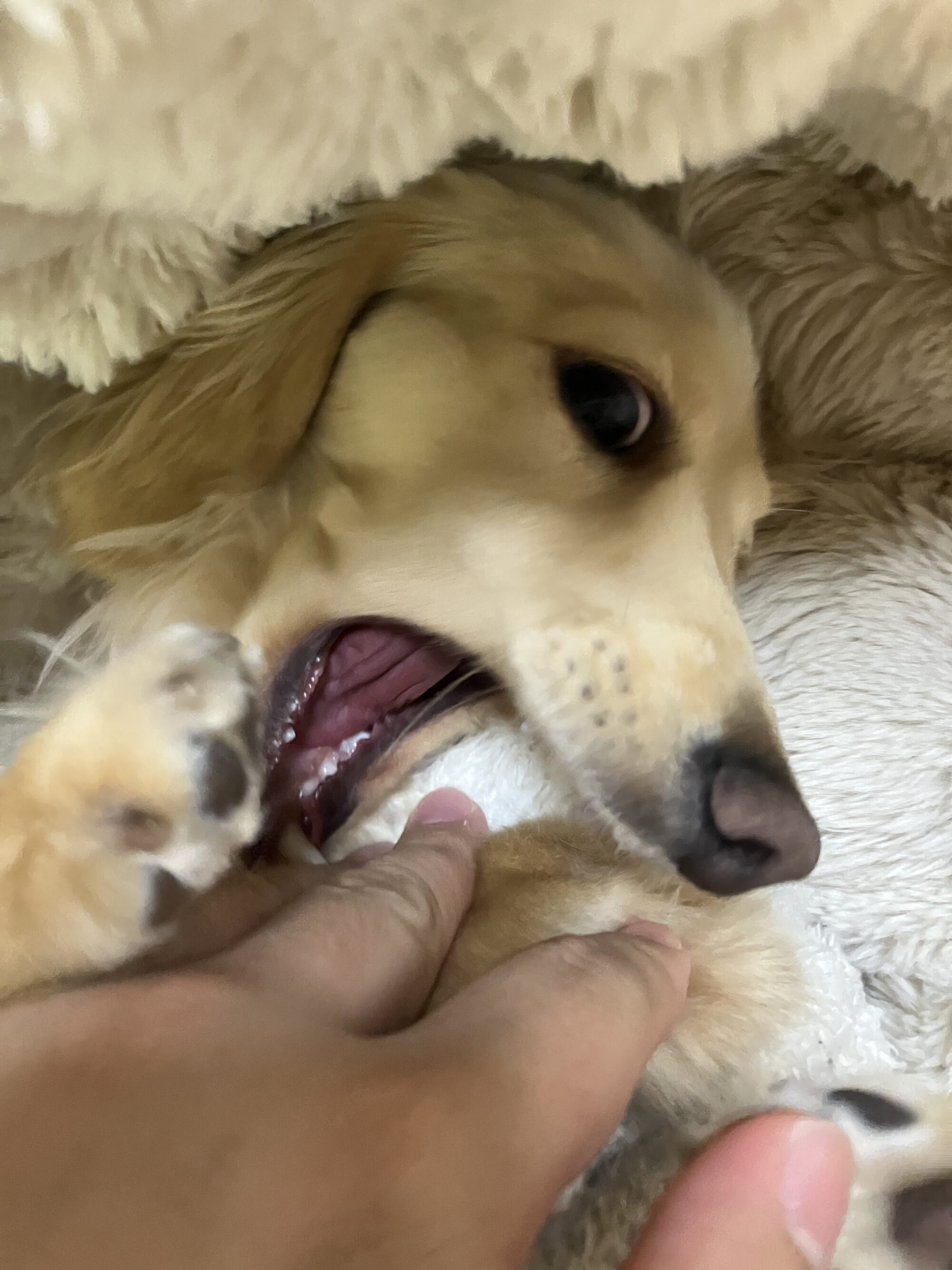 やめろやめてくれワンワン…疲れてるのに遊ぼうとするのはぼうっ