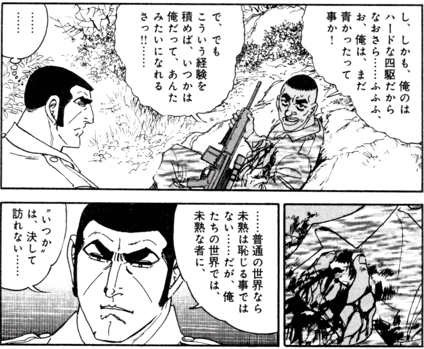 - 36二次元好きの匿名さん25/06/06(金) 23:27:20非常に地味なトコだけど『最後の戦場』の終盤に登場するデルタとスペツナズの隊員達 暗闇の中でゴルゴと戦っている最中にこの何とも言えず気の置けない雰囲気の会話がなんかすごい印象に残った。最後の戦場はおススメの一話 https://bigcomics.jp/episodes/92674b433b587/
