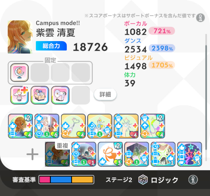 今期の好印象接待を機に今までやる気でゴリ押してたロジック枠用の好印象キャラをぼつぼつ厳選してるけど星屑の有無で滅茶苦茶スコアの安定感で変わって驚いてるのが俺なんだよね