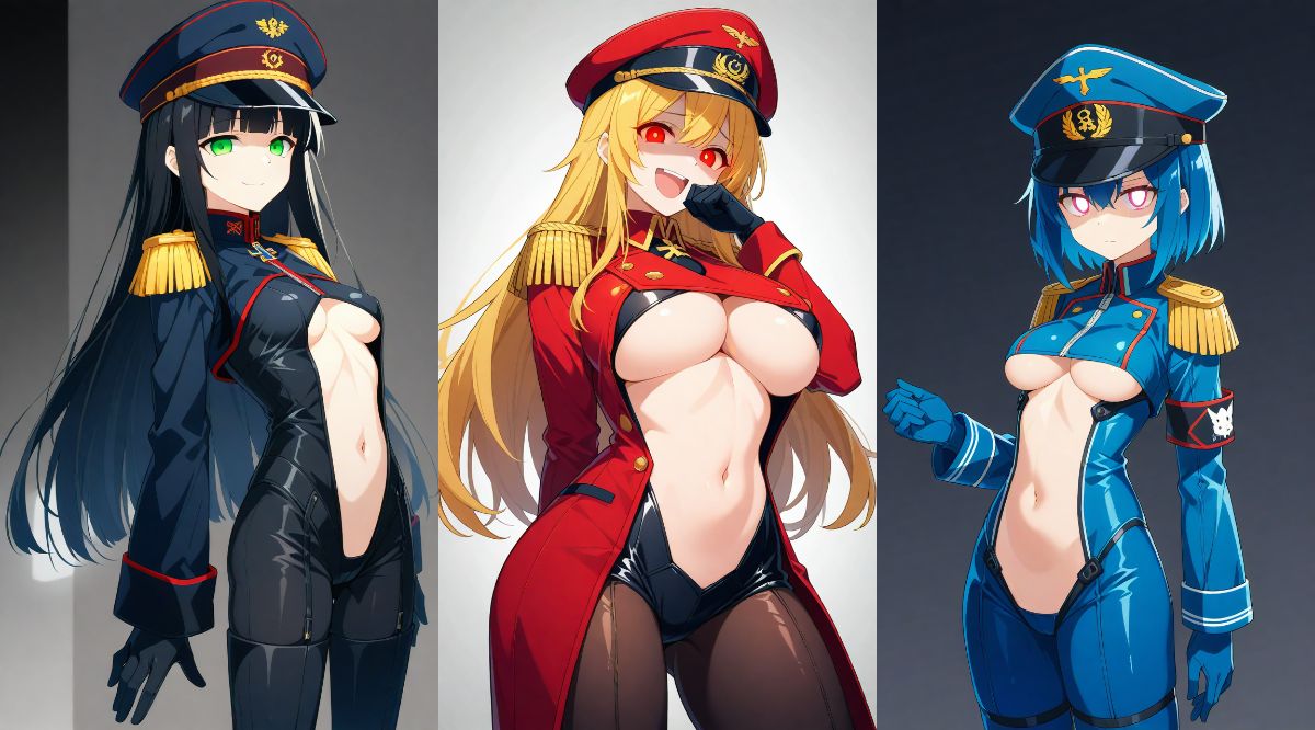 ◇この不自然に開いた穴がある赤黒青の変態軍服を着る淫乱メスブタトリオは…?