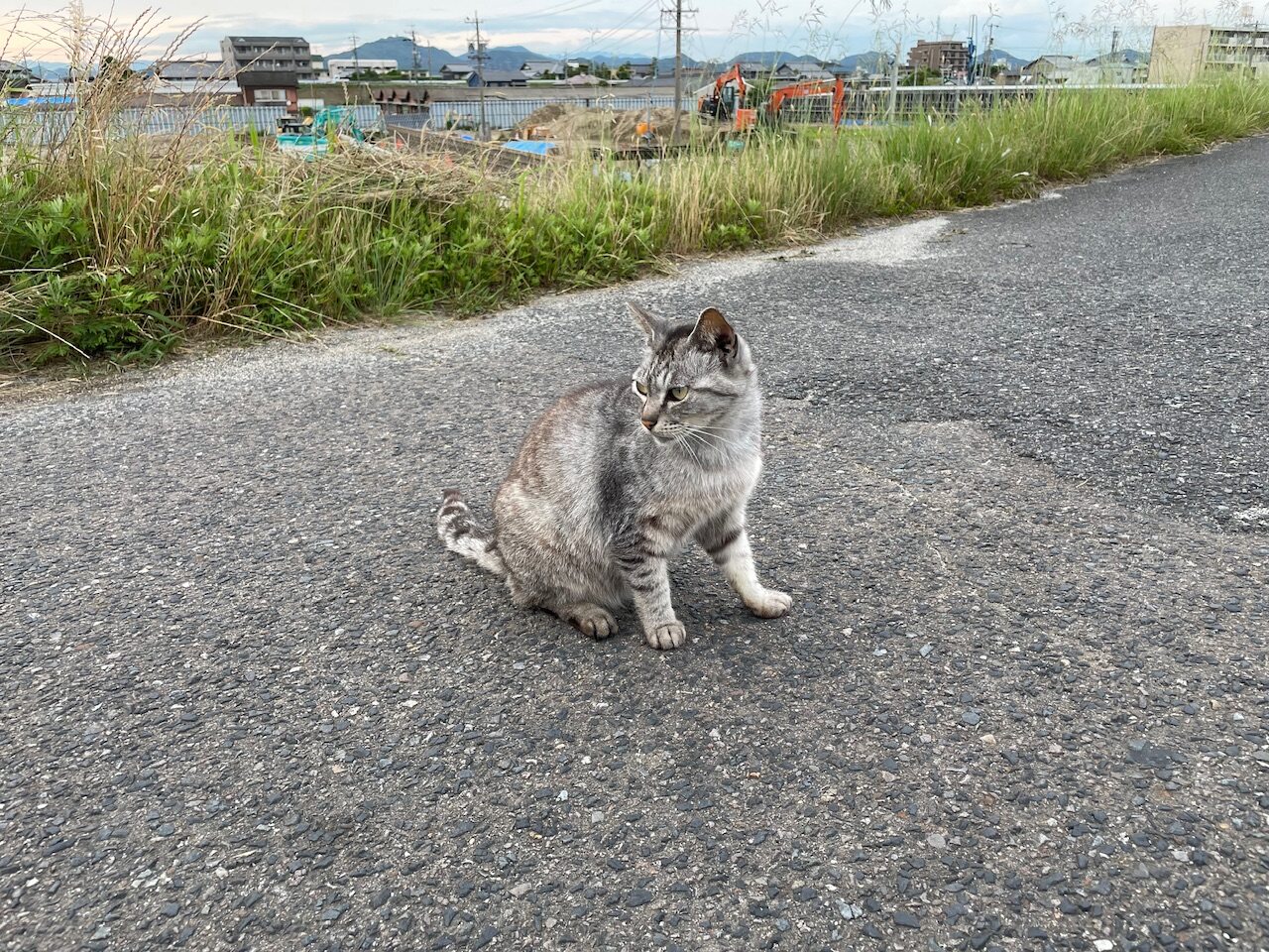 笠松にいっぱいいる猫さんはとっても撫でさせてくれやすい子が多いんで見つけたら大体撫でさせてくれるんだが、猫さんに敵意がないのを示すためにはゆっくり動いて目線を合わせないことが大事らしい。