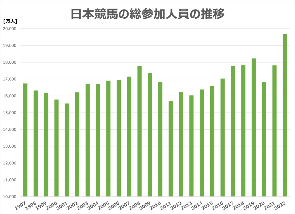 JRAのWebページに売り上げと参加人数の各年推移が乗っている