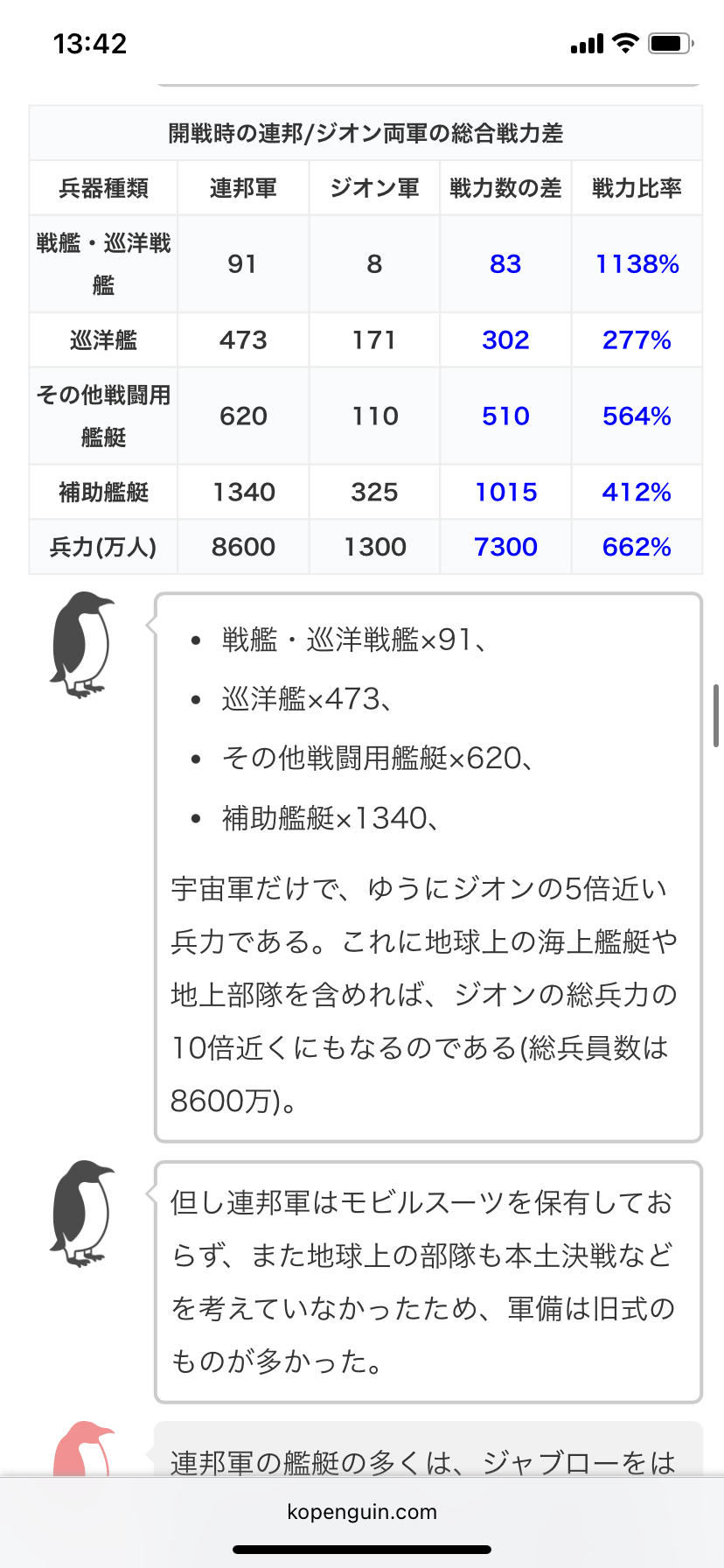一年戦争当時のジオンの戦力はジオン 戦艦8隻 重巡洋艦42隻 軽巡洋艦108隻 補給艦240隻だとか