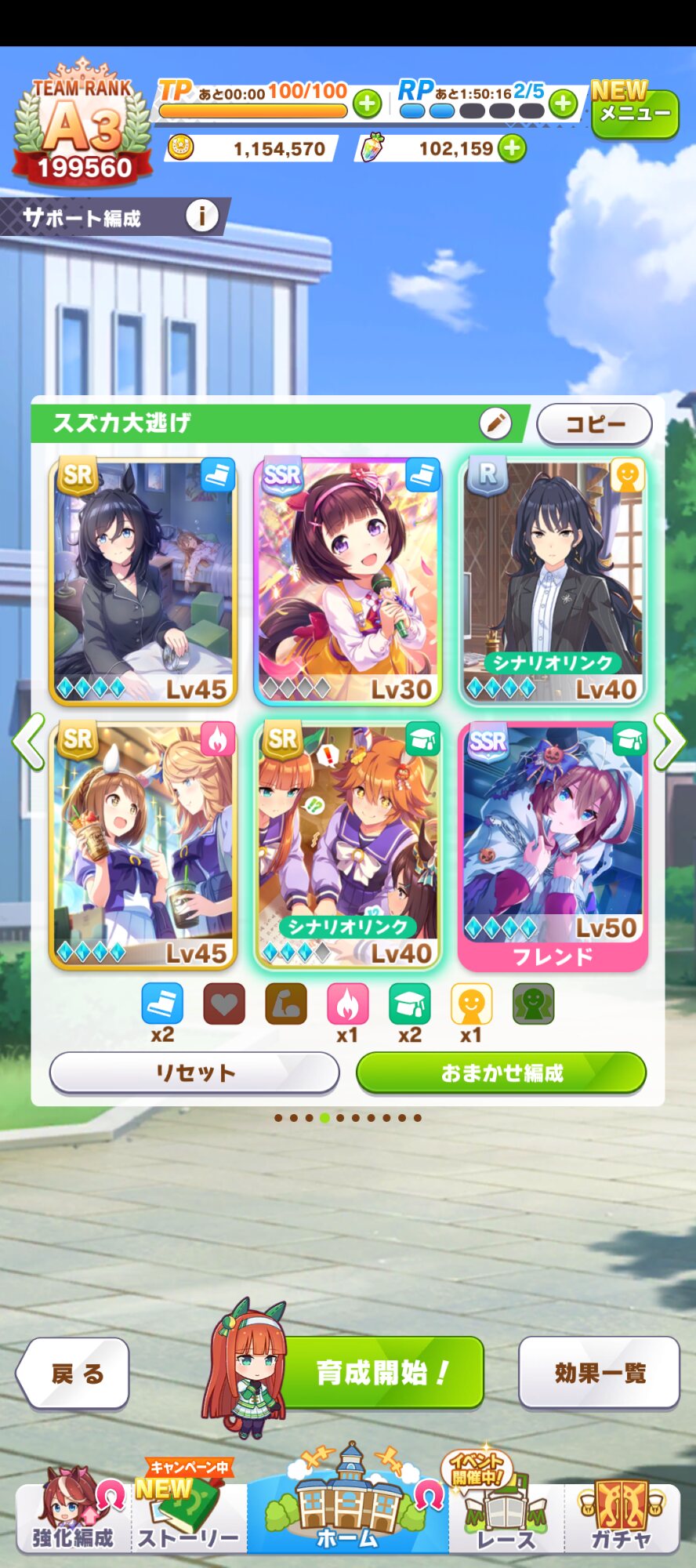 クリオグリの相方が後ろ2枚だと前が薄い時にクリオグリのタキオン固有が出なくて結局他3枚全発動ガチャが始まるのがな…