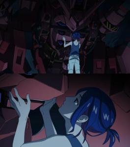 あとOPの「もしもあの裏門を超えて外へ抜け出していなければ」の所も直接的には繋がってないけれど次のカットがシュウジと赤いガンダムなのも見上げてるっぽく見えるかも