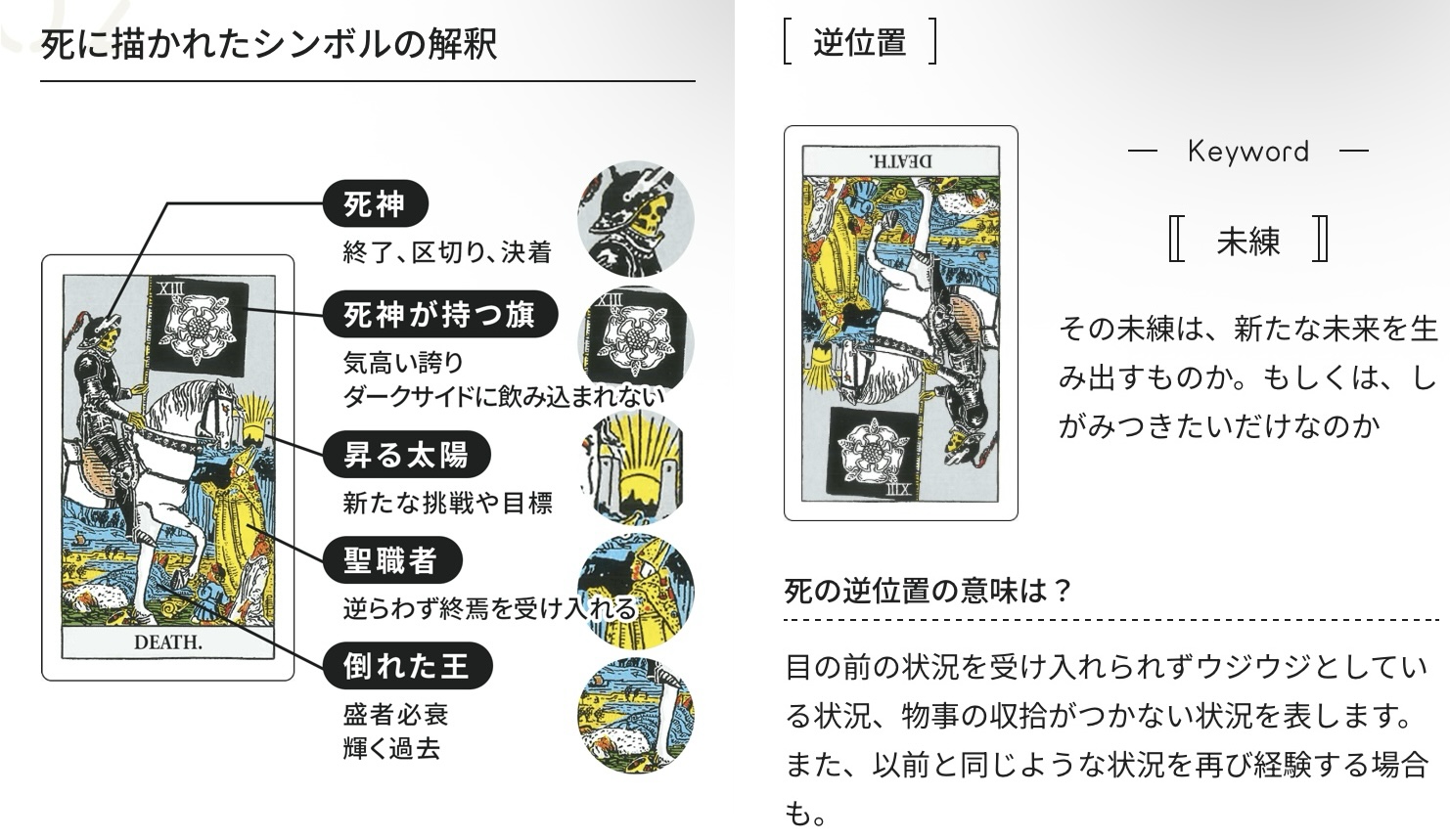 死神ってそこまで悪いカードじゃなくて変化とか現状の停滞が終わるとかそういう意味だしね