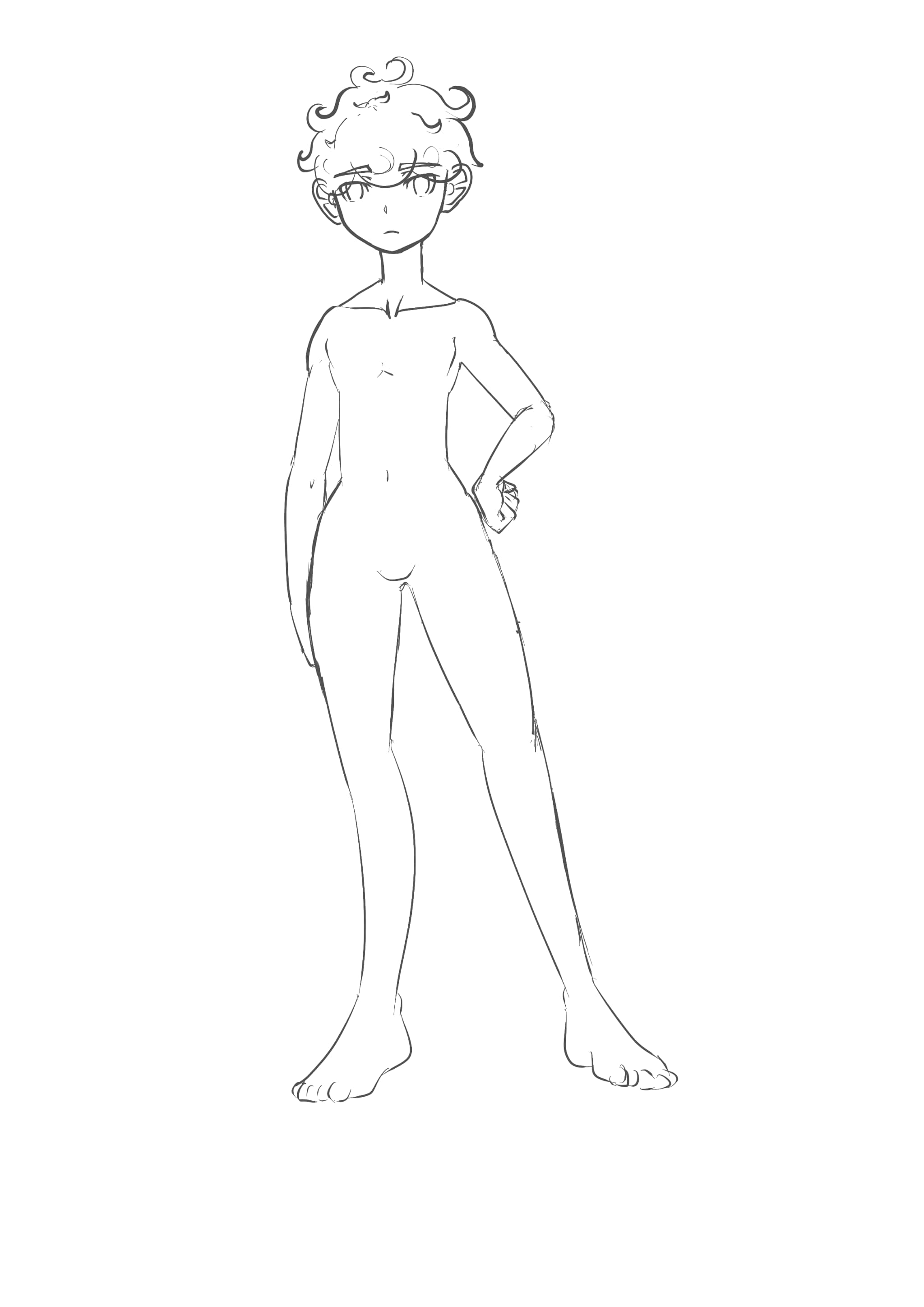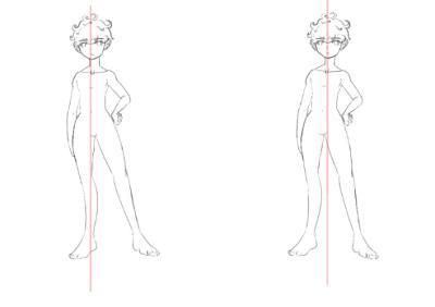 ショタでも男性ボディは上半身が逆三角〜四角寄りで それで相対的に腰が細く見える、が望ましい(腰周りが大きい、広がるわけではない)んじゃないかな〜と