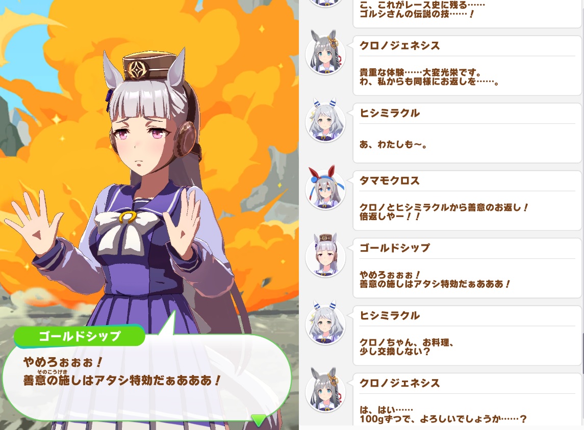 ゴルシ劇場で展開的に勝敗が存在する場合だいたい「ウザ絡みしたゴルシが負ける」が落としどころだもんな