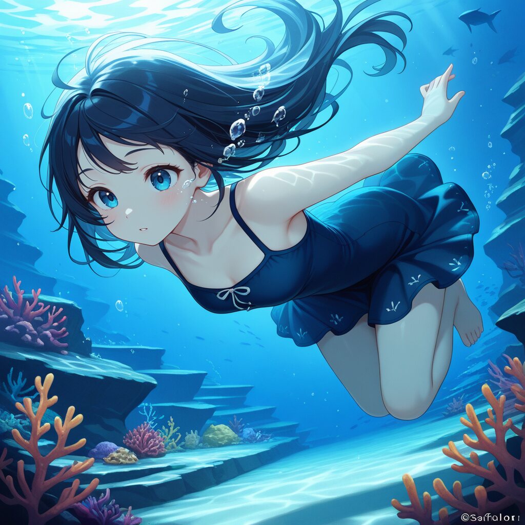 水中にキャラを入れる構図にするといつも水面が近すぎるんだよね