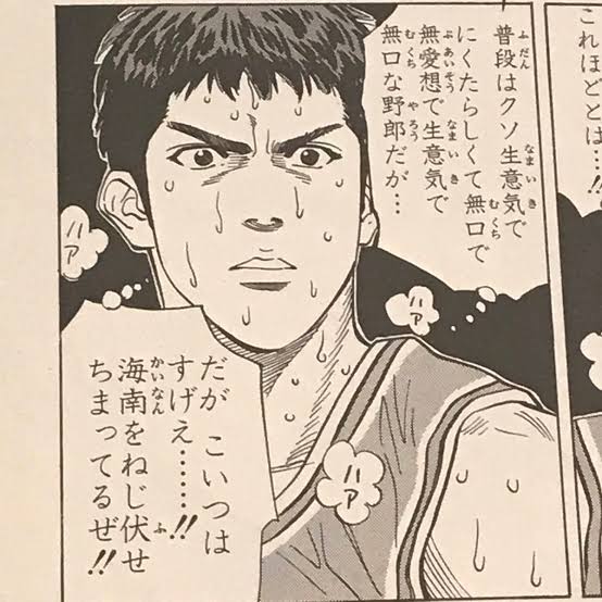 1年対上級生のゲームでもマッチアップで抑え込みつつ「そっからシュート狙ってみろ!お前の方が高さがあるんだぞ!」って声かけしたり花道がゴール下の練習してる時一番最初にオレがディフェンスになってやるよ桜木って言ったりミッチーなんだかんだ面倒見良いからな