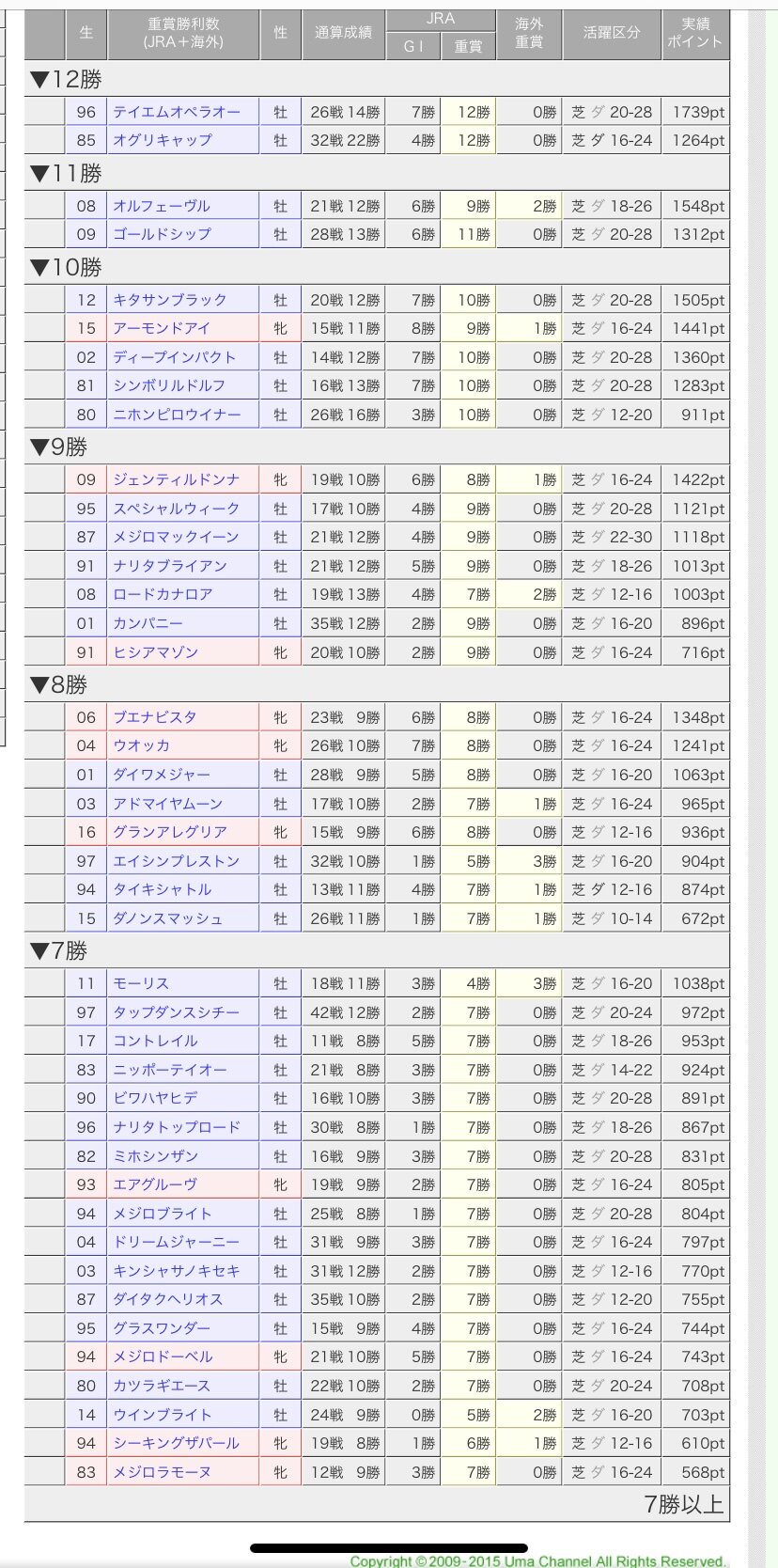 3歳までは安定してたのと、4歳以降もなんやかんやで阪神大賞典+G1を1つ勝ってたのでそれが積み重なったんやね