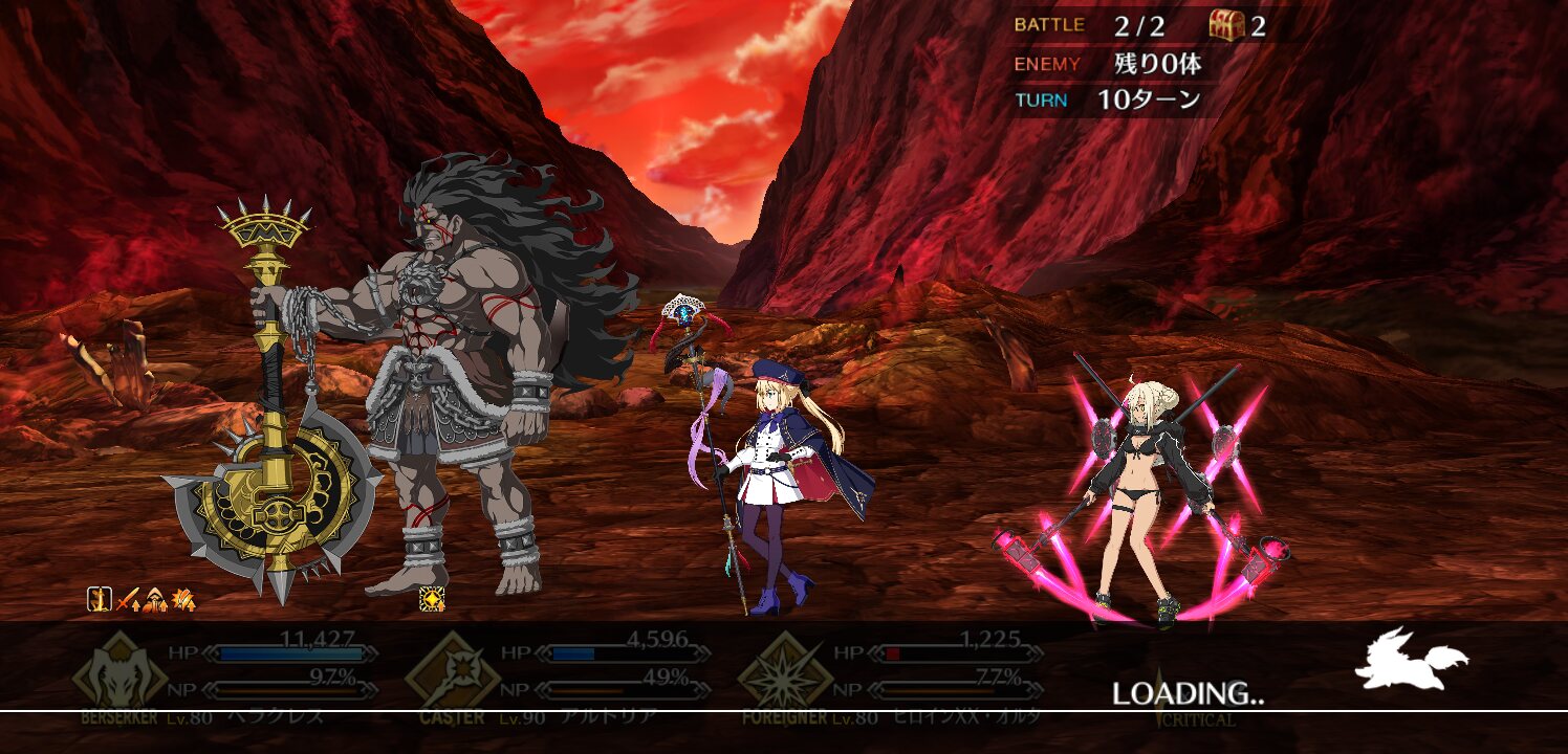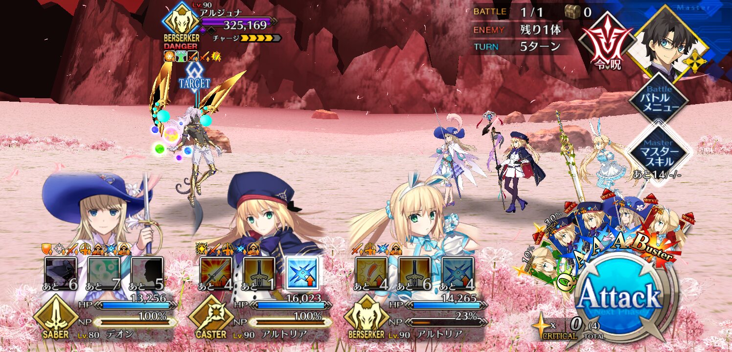 ちなみにキャストリアがいない当時は、序盤は回数制の回避や無敵、盾役とかで徹底的に時間稼ぎつつカルナやメインアタッカーで削る、宝具攻撃はガッツで耐えて返しの1,2ターンで決着をつける、或いは全滅して後続に投げる、のが基本、ツボ抑えた人ならカルナ以外全員レベル1みたいな飛車角落ち編成でも勝てたらしいです